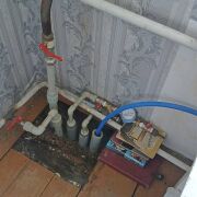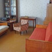 Веранда, кладовка, прихожая, кухня, 4 жилые комнаты. С мебелью. Деревянная входная дверь. Центральные холодная и горячая вода введены в дом, холодная - разведена по дому. Центральное отопление (+ резервный котёл на твёрдом топливе). Газовый баллон (газовая плита). Счётчики учёта воды. С/у на улице. Подготовлено помещение в квартире под с/у и осуществлена подводка воды. Закуплены новые унитаз и ванная. Пол – деревянный (доска, двп, окрашены). Стены - оштукатурены, обои. Потолок – двп, окрашен. Окна – ПВХ. Межкомнатные двери - деревянные (родные).