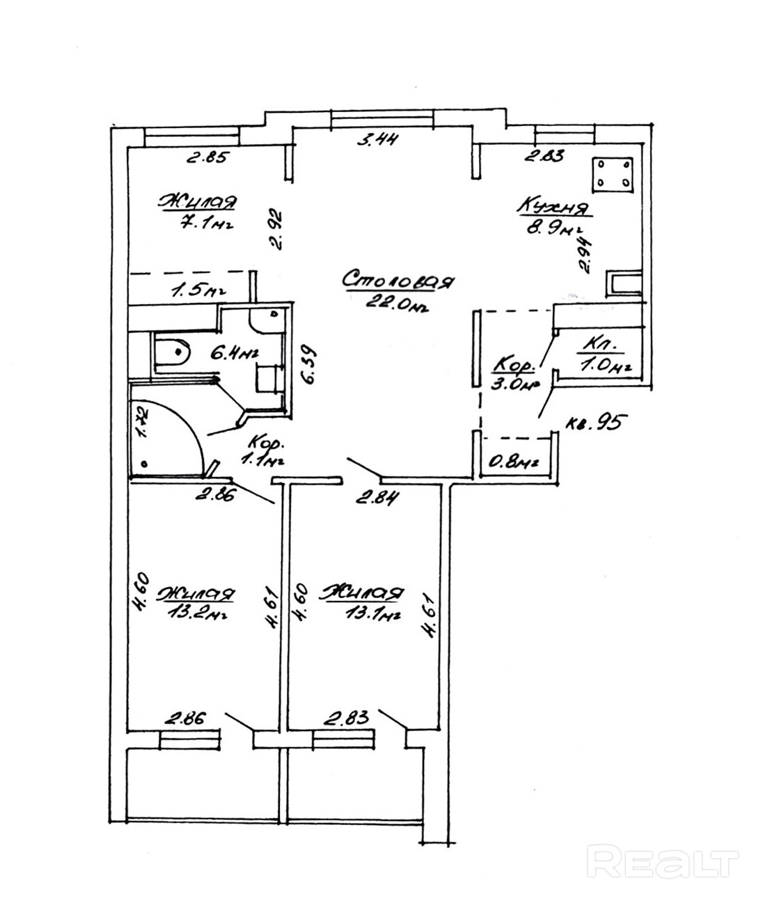 Планировка продумана до мелочей, сочетание общей и жилой площади оптимально (общая СНБ 82,3 кв.м.; жилая – 55,4 кв. м.).