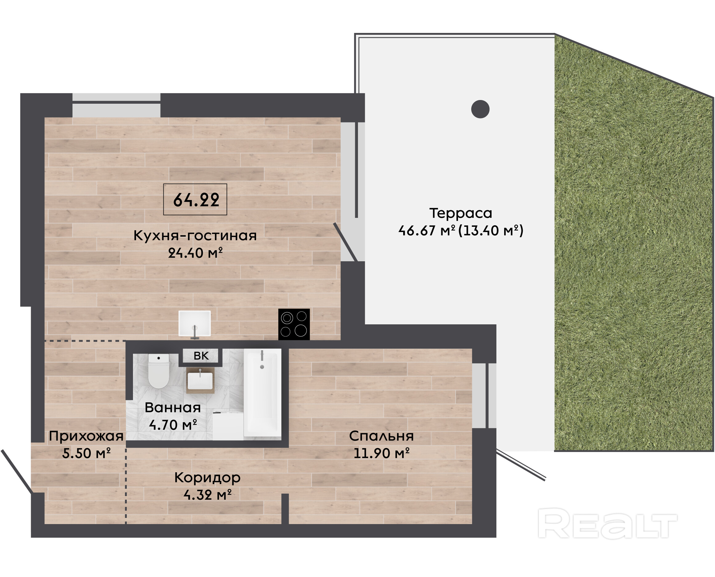 64.22 м²