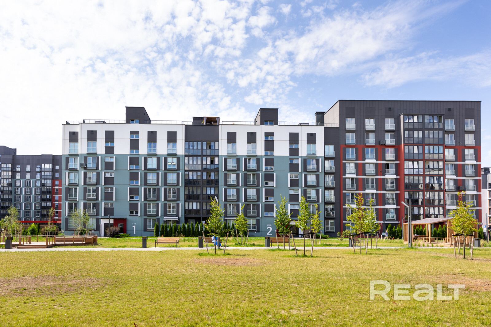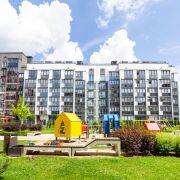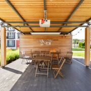 Собственное закрытое дворовое пространство с детской площадкой, крытыми беседками и оборудованным местом для барбекю.