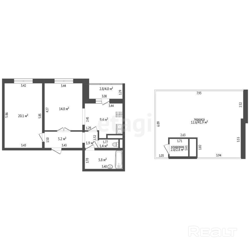 Общая площадь квартиры по СНБ - 76,0 кв.м., площадь террасы на кровле – 41,9 кв.м., кладовой – 2,8 кв.м. Звоните, пишите, буду рад воплотить Вашу мечту в жизнь!