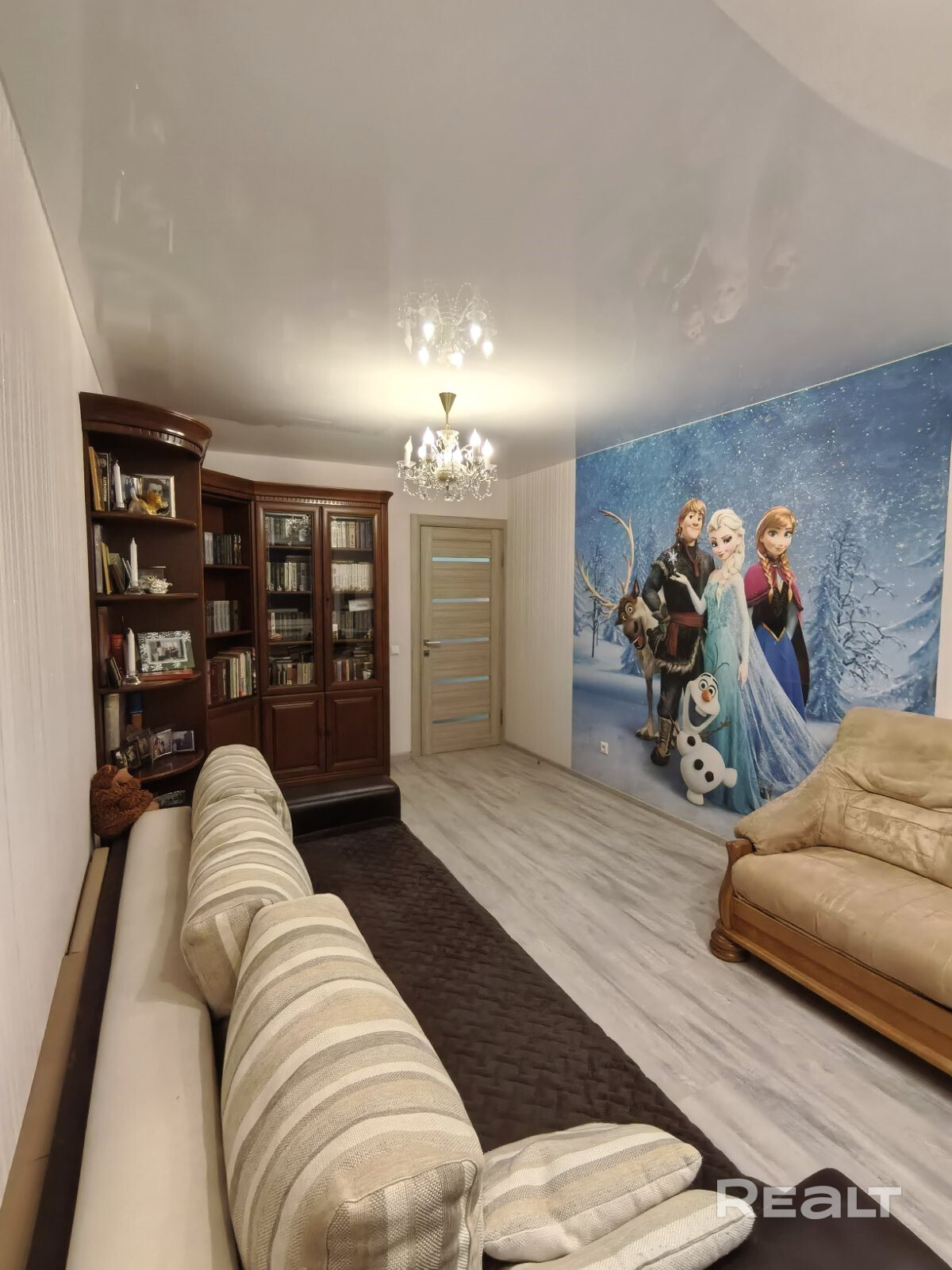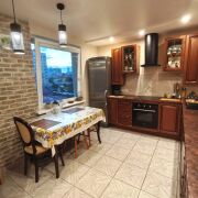 На кухне – плитка. В остальных комнатах – ламинат. Натяжной потолок. Разведена дополнительно электрика по квартире .