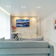 В квартире выполнен ремонт с применением высококачественных современных материалов: натяжные потолки с подсветкой, пол – испанская плитка с подогревом (частично), межкомнатные двери с магнитными замками и скрытыми петлями, качественная входная металлическая дверь. На всех окнах установлены маскитные сетки. Оборудованы