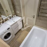 Ремонт в квартире выполнен в современном стиле с использованием дорогостоящих и высококачественных материалов. Все работы были сделаны по индивидуальному дизайн-проекту, что придает интерьеру уникальность и гармоничное сочетание функциональности и эстетики. Ремонт делался для собственных нужд владельцев, поэтому качество отделки и материалов находится на самом высоком уровне.