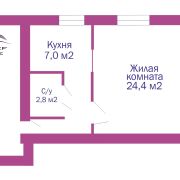 Сама квартира расположена на 2-ом этаже 2-этажного кирпичного дома 1965 года постройки. Площади: 41,4м2 /24,4м2 /7,0м2, санузел совмещенный.
