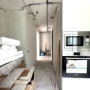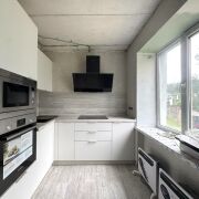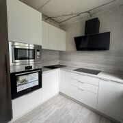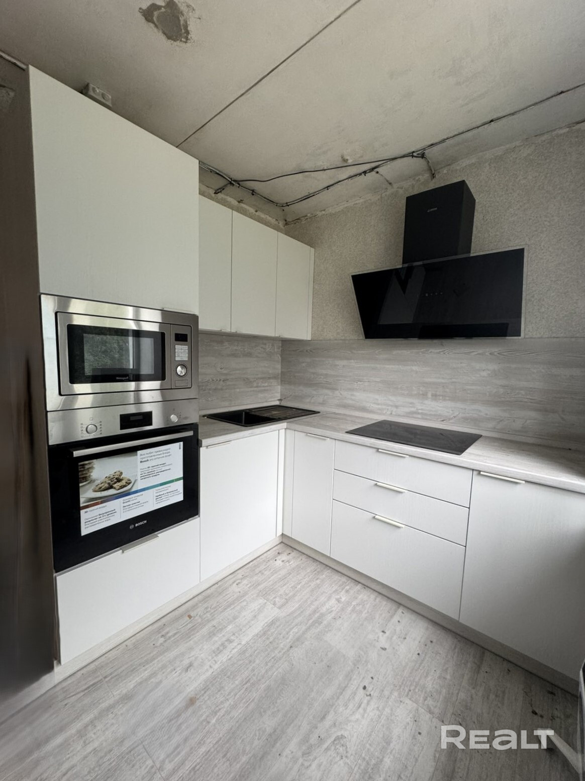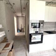В квартире хороший совершенно новый ремонт на стадии чистовой отделки, стеклопакеты, металлическая входная дверь, полы-ламинат, встроенная кухня с бытовой техникой: Bosch, Weissgauff, Germes.