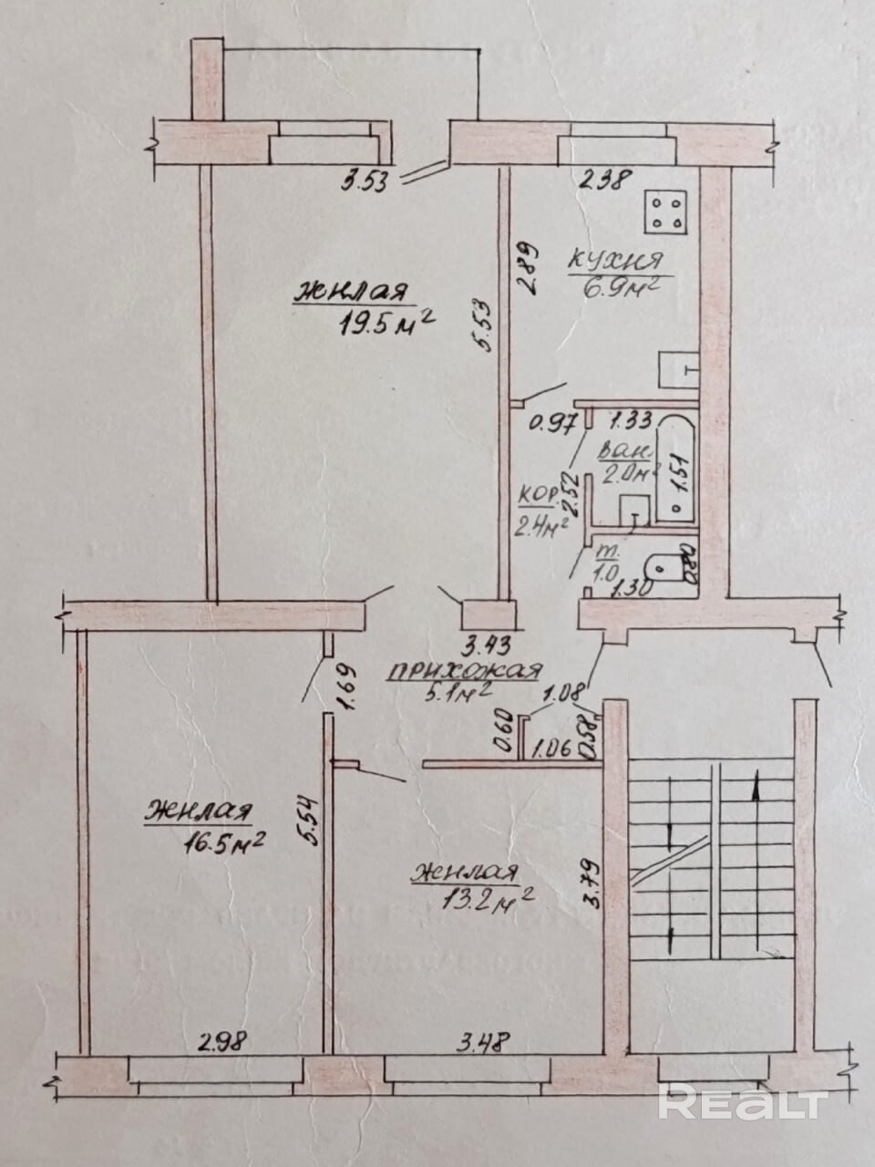 Общая площадь квартиры – 67,2 кв.м., жилая площадь – 49,2 кв.м. Удобная планировка состоит из трех изолированных жилых комнат площадью 13,2 кв.м, 16,5 кв.м. и 19,5 кв.м. Кухня 6,9 кв.м. Раздельный санузел. Из одной комнаты есть выход на балкон. Балкон застеклен и обшит.
