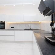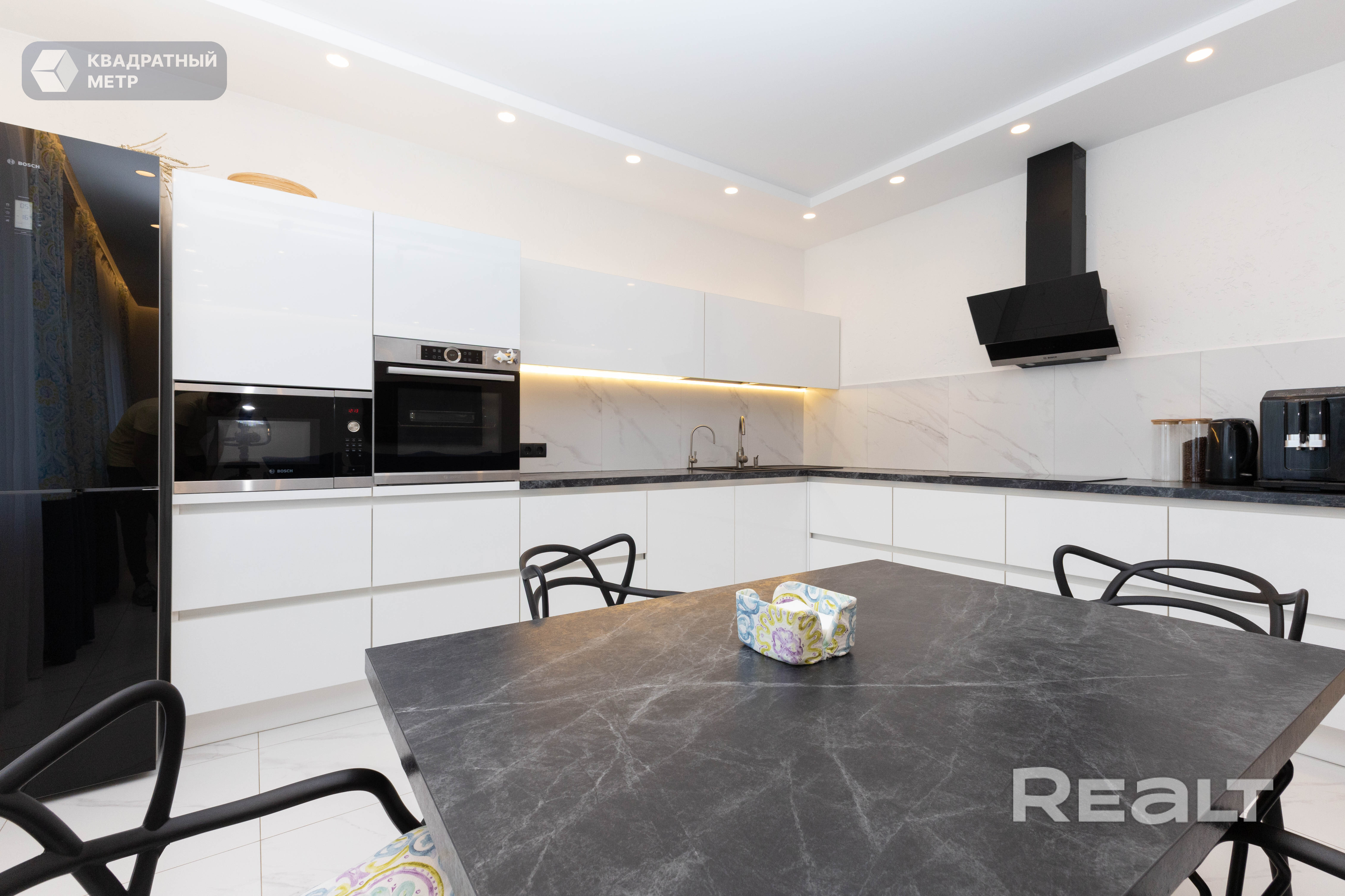 Современный кухонный гарнитур со встроенной техникой. Установлен фильтр для питьевой воды с пятиступенчатой очисткой. Вся техника в прекрасном состоянии и практически новая. На полу уложена испанская плитка. Что придает дополнительную роскошь и качество данной квартире. В комнатах все готово для проживания. Установлена дорогая мебель. Все без дефектов, в идеальном состоянии.