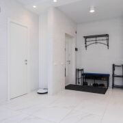 У входа огромный шкаф купе, достаточно мест хранения для всей семьи. Установлена качественная входная металлическая дверь.