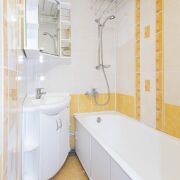 Прекрасное состояние санузла. Свежая плитка с отличным дизайном.
