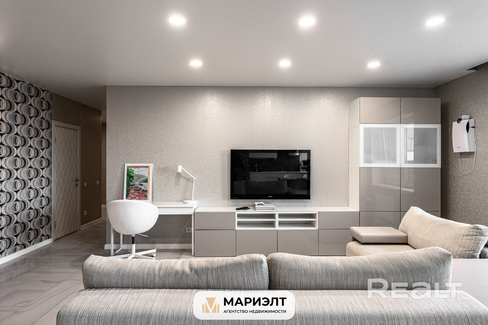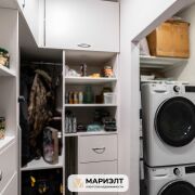 Бытовая техника: стиральная машина LG, сушильная машина LG, посудомоечная машина Electrolux, варочная электропанель Electrolux, духовой шкаф Bosch, холодильник встроенный, морозильник, вытяжка, система очистки воздуха, видеодомофон.