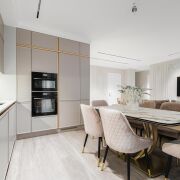 -Кухня-гостиная площадью 26 м2 — сердце дома, где можно готовить, общаться и отдыхать. Современный кухонный гарнитур оснащён всей необходимой техникой и удобными системами хранения.