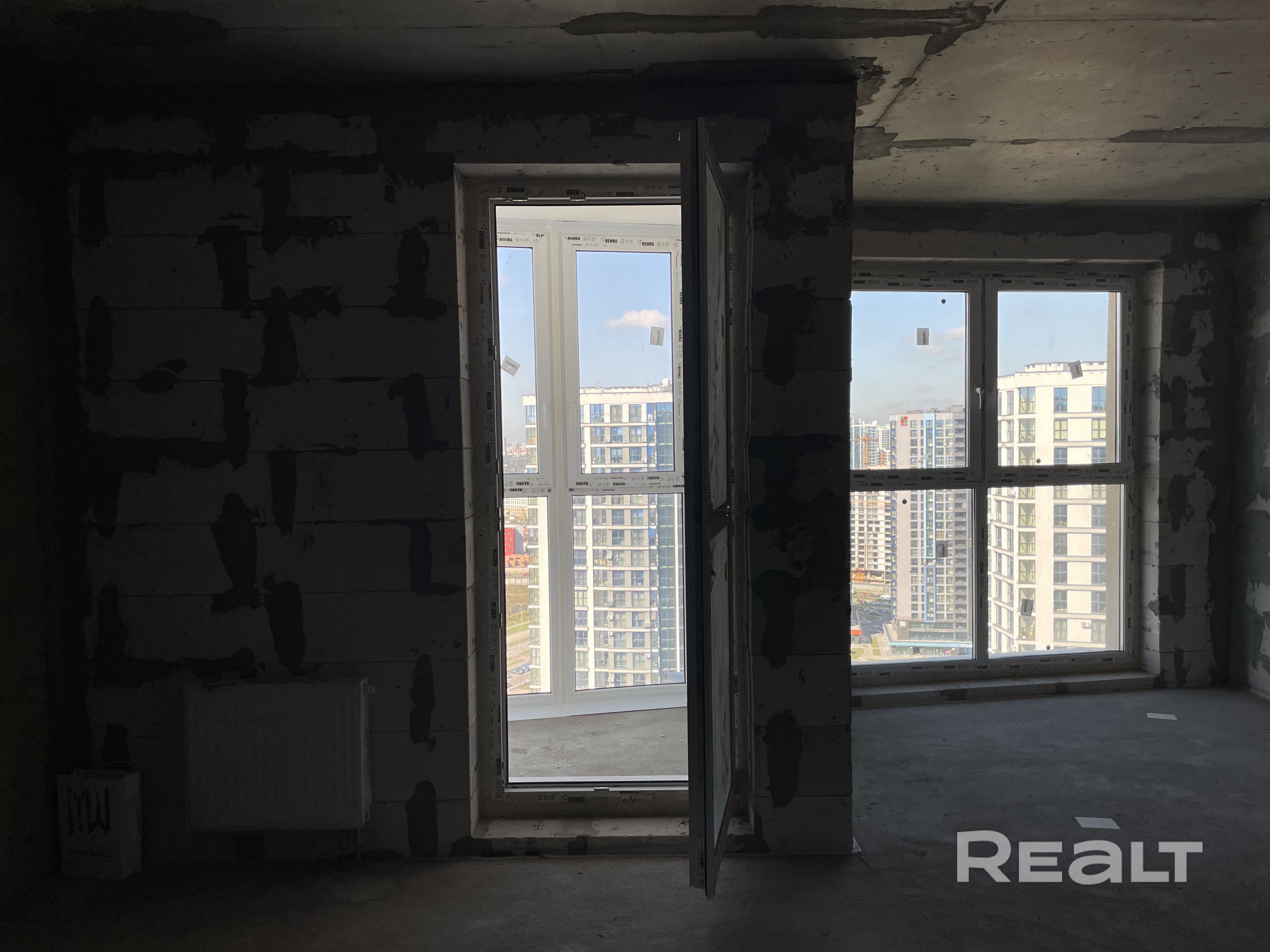 Квартира светлая, со строительной отделкой.