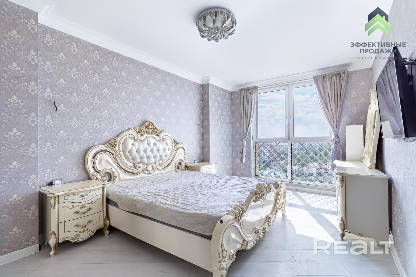 Квартира очень светлая с панорамными окнами, что обеспечивает поступление достаточного количества естественного света.