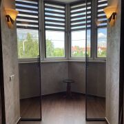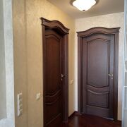 В квартире установлена входная металлическая дверь. Межкомнатные двери из массива, а также стеклянные раздвижные. В оконных проемах качественные энергосберегающие стеклопакеты.