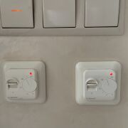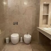 Полы выложены итальянской плиткой в прихожей, в санузлах и на кухне, отапливаются и регулируются индивидуально. Полы в гостиной, спальне и кабинете выложены итальянским паркетом.