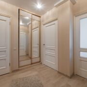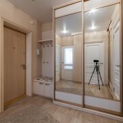 В коридоре установлены 2 шкафа-купе, вешалка с тумбой для обуви. Также в квартире оборудована гардеробная. Лоджия застеклена (ПВХ)