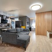 При строительстве дома использованы стеновые панели, изготовленные по многослойной технологии, сочетающей бетон и каменную вату (благодаря этому в квартирах − хорошая звукоизоляция). Кроме того, коммуникации спроектированы таким образом, что зимой в квартире очень тепло, даже при выключенном отоплении.