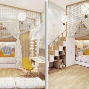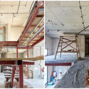 1. Возведена дополнительная антресоль из металлоконструкций для размещения рабочего кабинета и гардеробной комнаты;