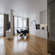 -Большая и просторная квартира с удобной планировкой. Две раздельных комнаты, просторная кухня-гостиная и гардеробная. Высота потолков 3.03м.