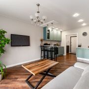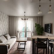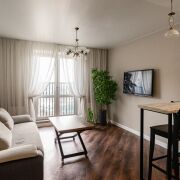 При входе мы видим светлую уютную квартиру. Грамотная планировка, кухня-гостиная, со всей бытовой техникой и удобствами. Так же прекрасная отдельная спальня с красивой лоджией и чил зонной для спокойного отдыха. Стильный сан.узел с теплым полам.
