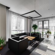 При входе в Жилой Комплекс, открывается вид на просторное лобби, где предусмотрено всё для удобства жильцов. Место для консьержа, полки с книгами, места для отдыха и ожидания. На самом этаже есть колясочная, где вы сможете оставить вашу коляску в отдельном помещении. Дом оснащен немецкой системой отопления фирмы Kermi, скоростными лифтами OTIS.