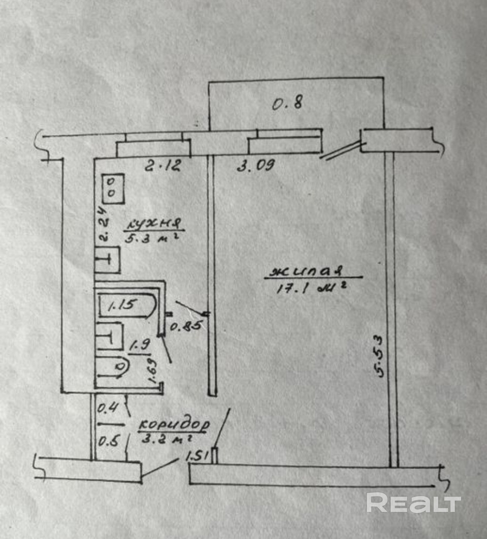 5.3 м²