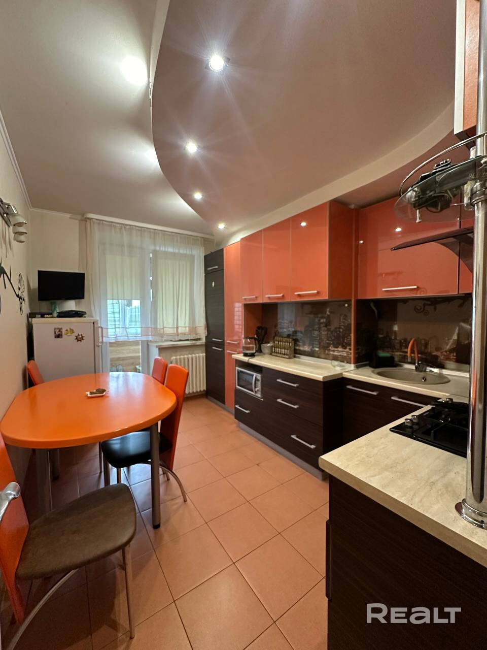 Встроенная кухня со всей необходимой техникой.