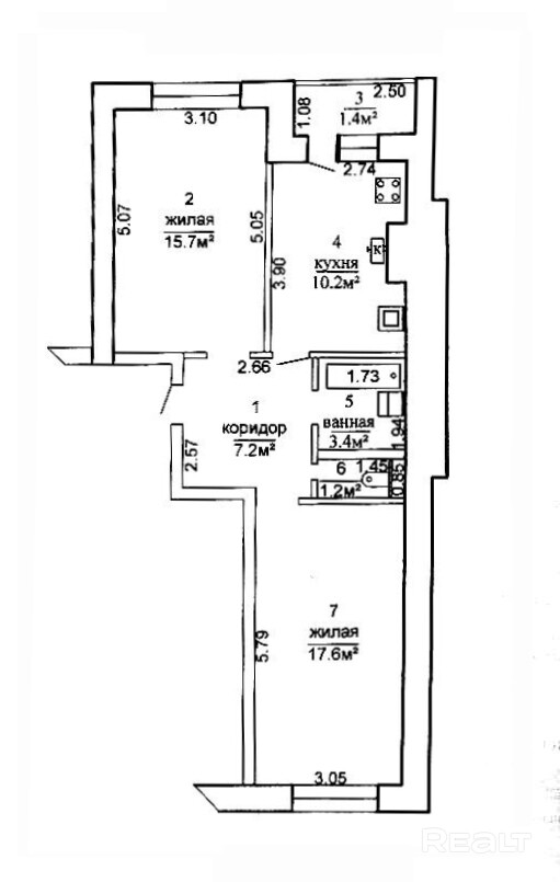 Жилая площадь: 33.3 м2