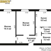 2. Квартира расположена на 1 этаже 5 этажного шлакоблочного дома 1959 года постройки, окна выходят во двор, не торцевая. На лестничной площадке в настоящее время располагается только эта квартира. Площадь общая 57,6 кв.м., жилая 35,4 кв.м., кухня 8,8 кв.м., санузел раздельный, высота потолков около 3 м. В 2020 году был произведен капитальный ремонт.