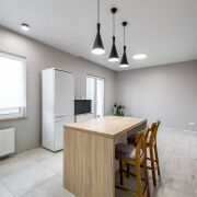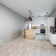 В квартире качественный ремонт, который немного не закончен. Все стены выровнены и окрашены в актуальные цвета, напольное покрытие в зоне кухни-керамогранит, на остальной площади ламинат одним полотном.