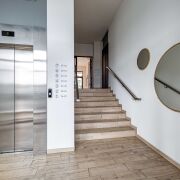 Проходной подъезд (на две стороны) оснащён грузопассажирским бесшумным лифтом и лапомойкой.