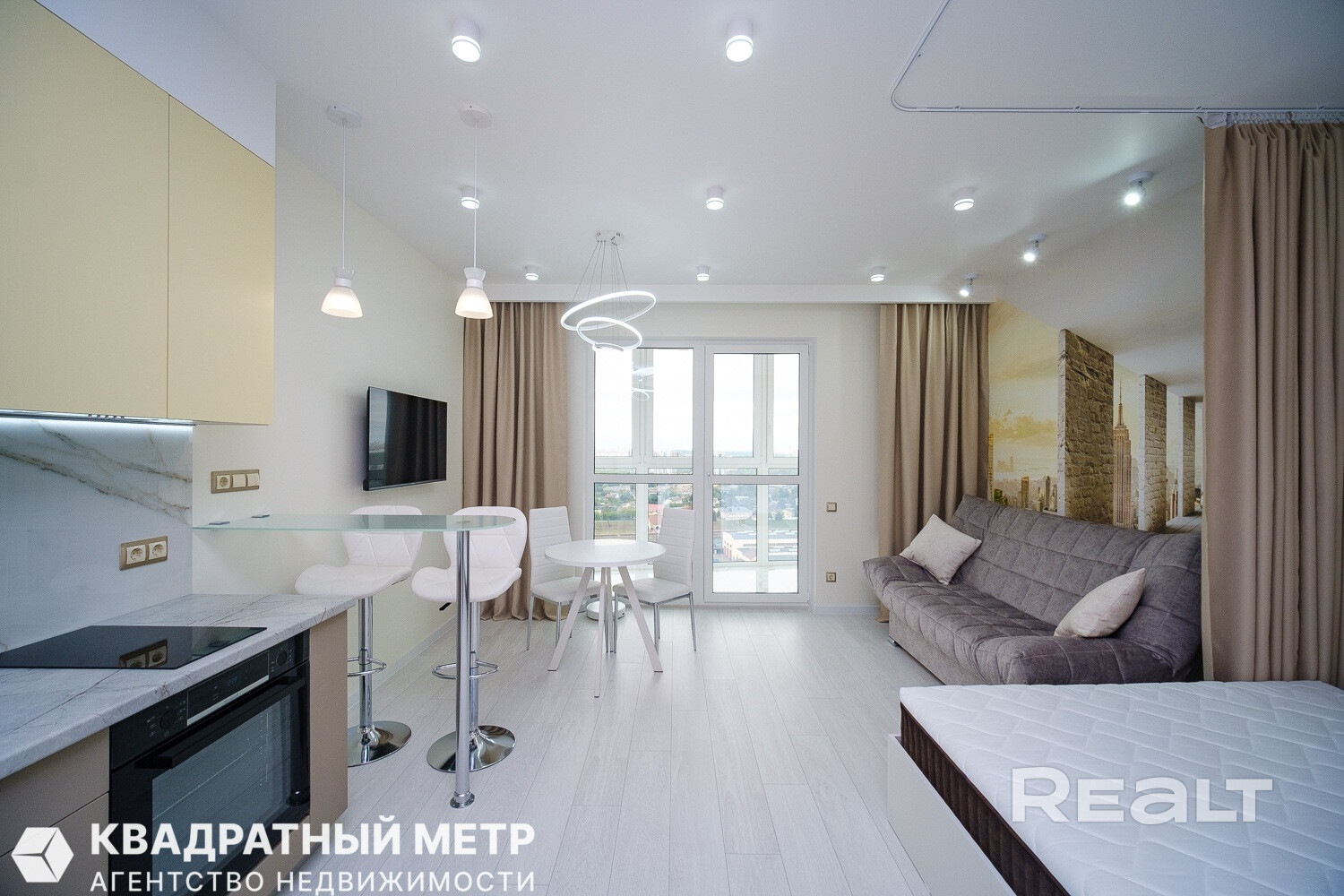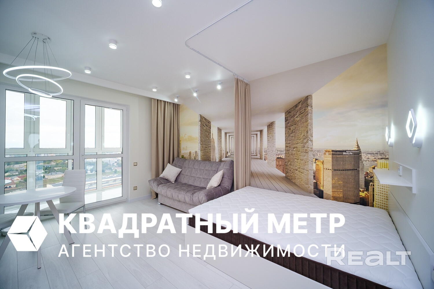 Продаётся НОВАЯ стильная студия с панорамным видом на 20-м этаже в ЖК «Минск Мир»