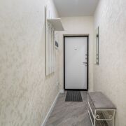 Коридор и прихожая: установлена качественная металлическая дверь, на полу плитка. Имеется зона для хранения верхней одежды.