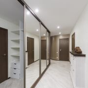 Кухня 12,6 кв.м., объединенная с гостиной 18,7 кв.м, две раздельные жилые комнаты 14.6 кв.м. и 21,9 кв.м., два санузла - один из них объединен с душевой, просторная гардеробная комната.