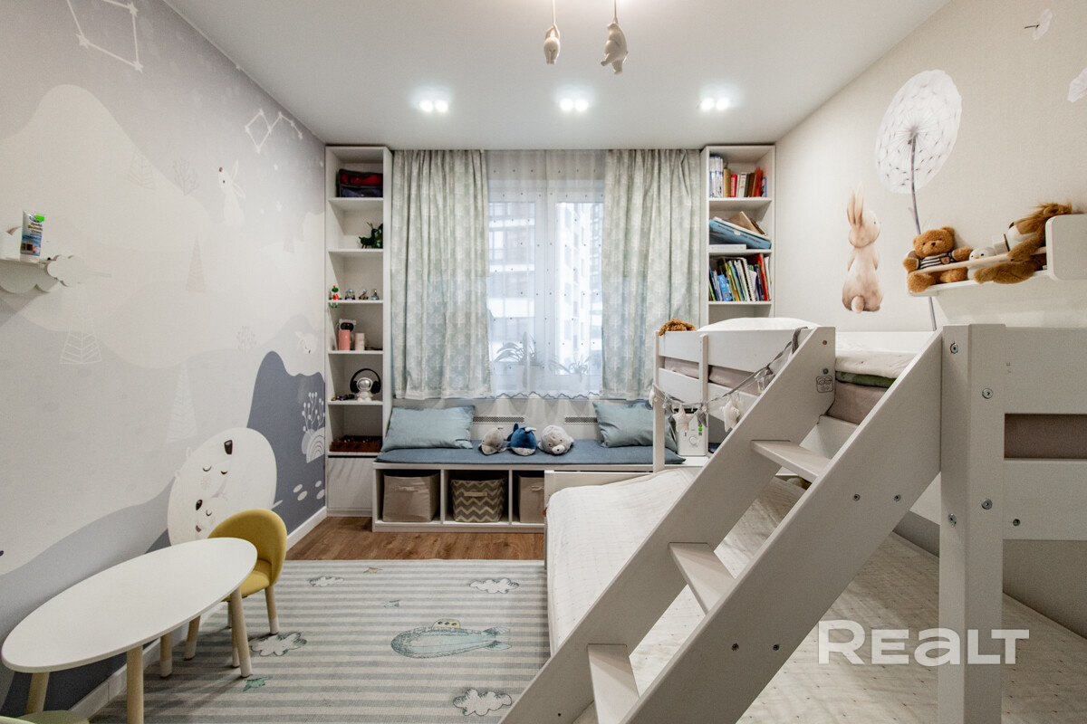 Три изолированные комнаты: две спальни 10 и 16 м, кухня гостинная 25 м. Раздельный санузел, две лоджии. Окна выходят во двор, что немало важно, нет шума от дороги. Хорошее месторасположение - все в шаговой доступности, Гиппо, садик, школа,бутики, спортивные залы, рядом церковь. На против торговый центр Avia Mall. 10 минут до центра. Рядом метро Аэродромная -100 м Лучшее расположение во всем Минск Мире! Чистая продажа!