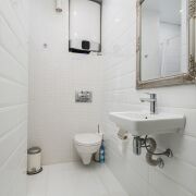 * Два санузла: один с большой ванной, второй — с современной душевой кабиной.