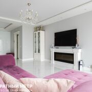 * Авторский дизайн: Комбинированные потолки (гипсокартон и натяжные) с контурной подсветкой и множеством сценариев освещения. Особую уютную атмосферу создаёт электрокамин и роскошные чешские люстры с хрусталем.