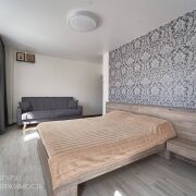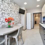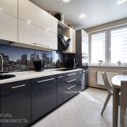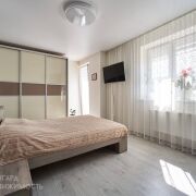 В квартире сделан основательный, современный ремонт. При отделке использовались дорогостоящие импортные строительные материалы. Напольное покрытие ламинат и плитка. Стены выровнены и оклеены обоями. Натяжные потолки по всей квартире. Дорогостоящие межкомнатные двери. Квартира максимально оборудована мебелью и техникой. Системы хранения представлены вместительными шкафами –купе в коридоре и спальне. Детская комната обустроена корпусной мебелью (шкаф, стол, полки, комод и кровать). В кухне установлена встроенная кухня с бытовой техникой. Ванная комната и туалет облицованы.