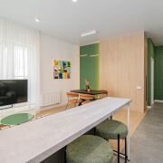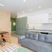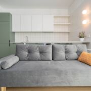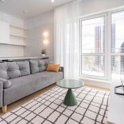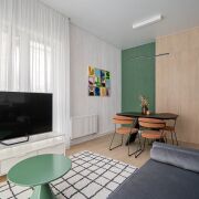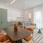 Квартира расположена на последнем этаже десятиэтажного дома Миконос квартала Средиземноморский в современном комплексе Минск-Мир, с окнами на обе стороны дома и прекрасным видом. Очень удобная и эргономичная планировка в формате евротрешки площадью 66,9кв.м. по СНБ: две раздельные комнаты и просторная кухня-гостиная.