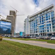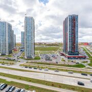 Максимально хорошее впечатление вызывает не только состояние подъезда, но и придомовой территории: чистота, зеленые лужайки, современные детские площадки, велопарковки. С учетом малоэтажности застройки достаточно парковочных мест (имеется внешняя парковка и во дворе дома). Расположение дома отличное – через дорогу будущий международный финансовый центр и торговый центр «Авиа Молл», а до ст.метро Аэродромная 5 минут неспешным шагом. В пешей доступности огромное количество минимагазинчиков различной направленности, кофеен и фастфуда.