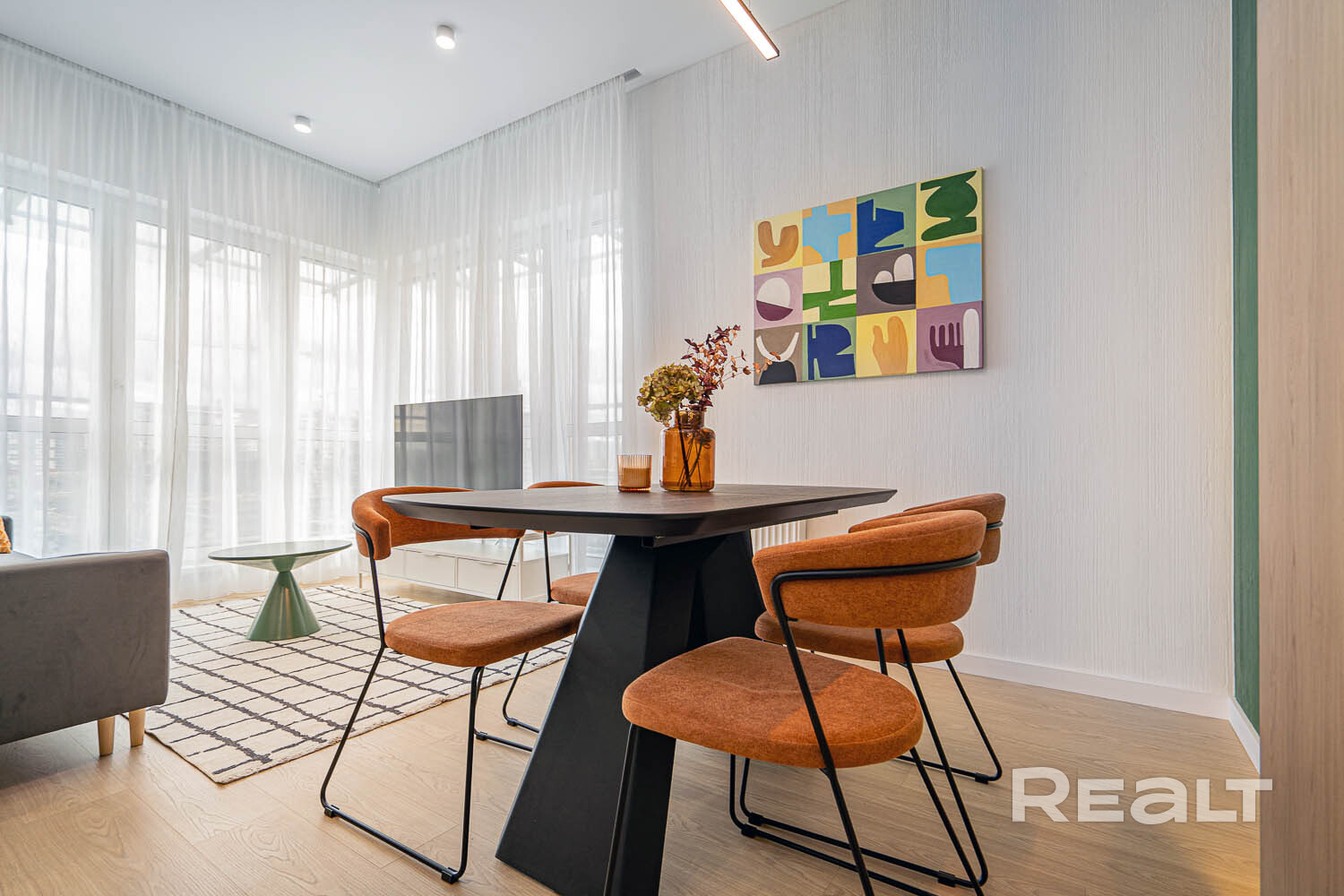 Ремонт сделан на достойном уровне и не требует дополнительных вложений. Квартира оснащена всей необходимой техникой и мебелью для комфортного проживания, и всё, что на фото, остаётся при продаже будущим владельцам и уже включено в указанную цену. Цветовая гамма интерьера выполнена в светлых и глубоких темных тонах, которая в сочетании с выбранным освещением поможет создать необходимую Вам атмосферу.