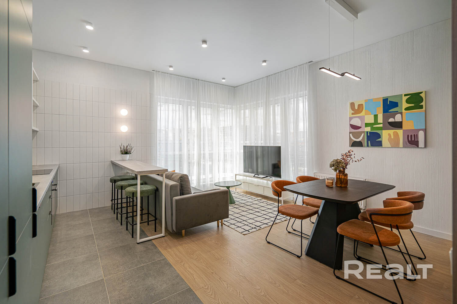 удобная кухня-гостиная с выходом на просторный балкон;