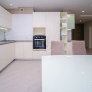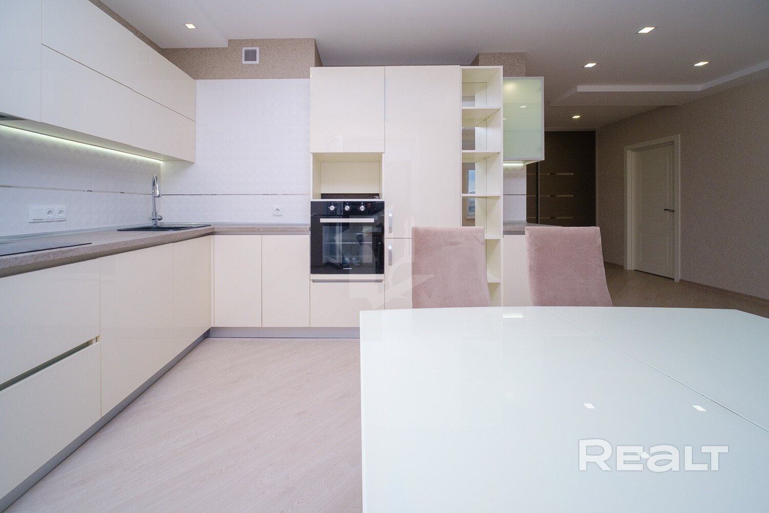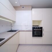 Кухня оснащена кухонным гарнитуром со всей необходимой техникой: варочная поверхность, духовой шкаф, посудомоечная машина, встроенный холодильник.