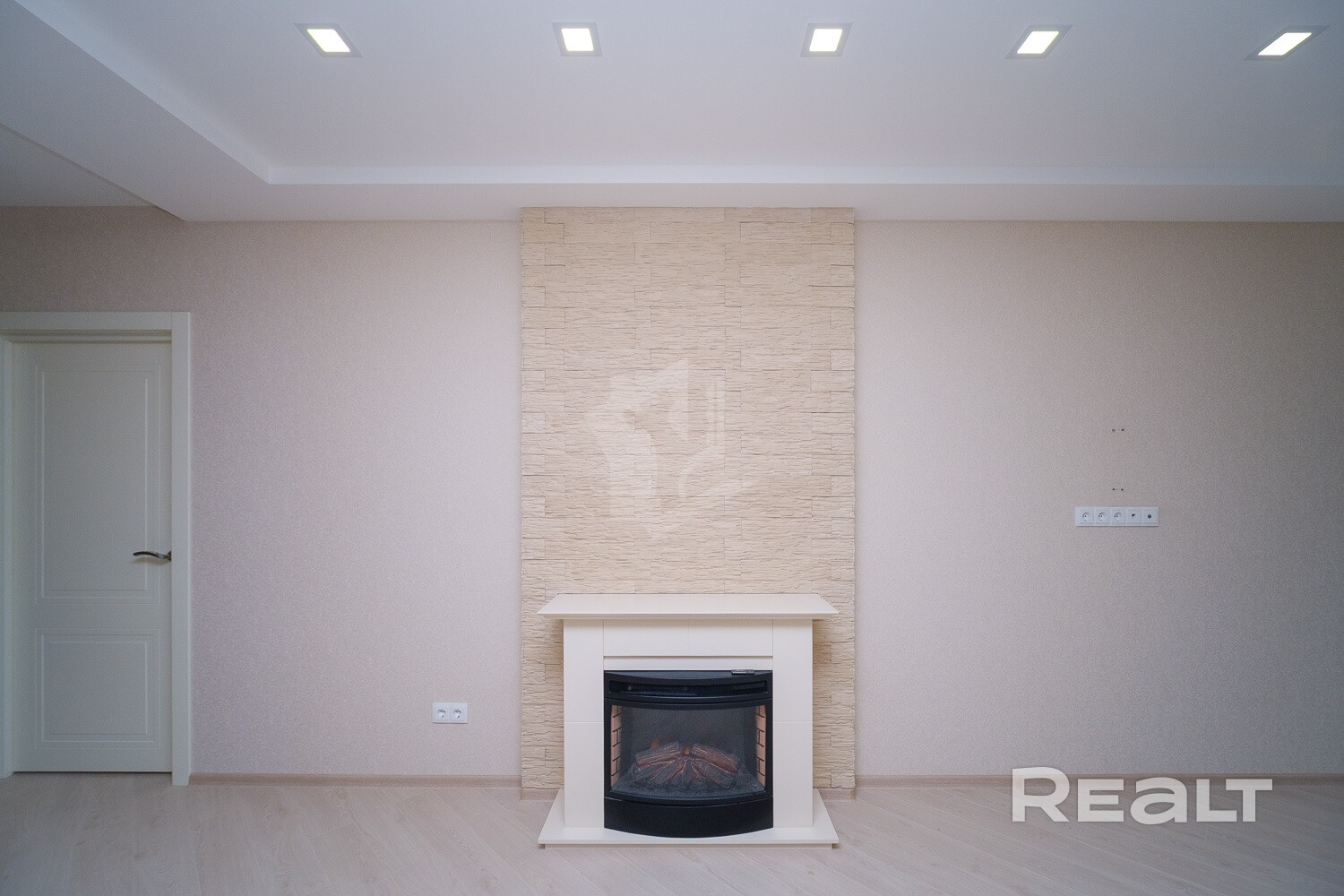 В гостиной установлен камин, кондиционер.