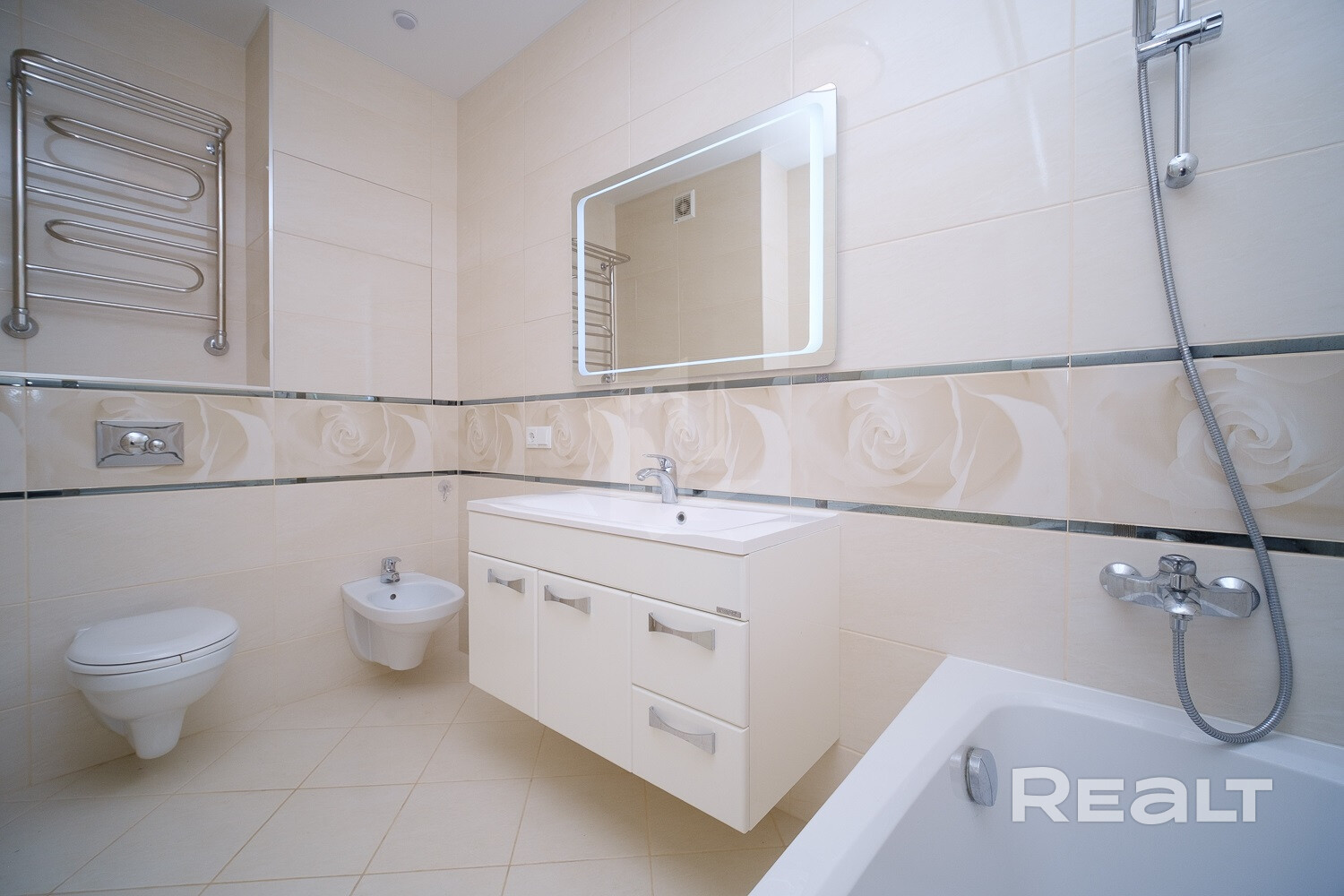 Просторный сан. узел ,облицовка- плитка.