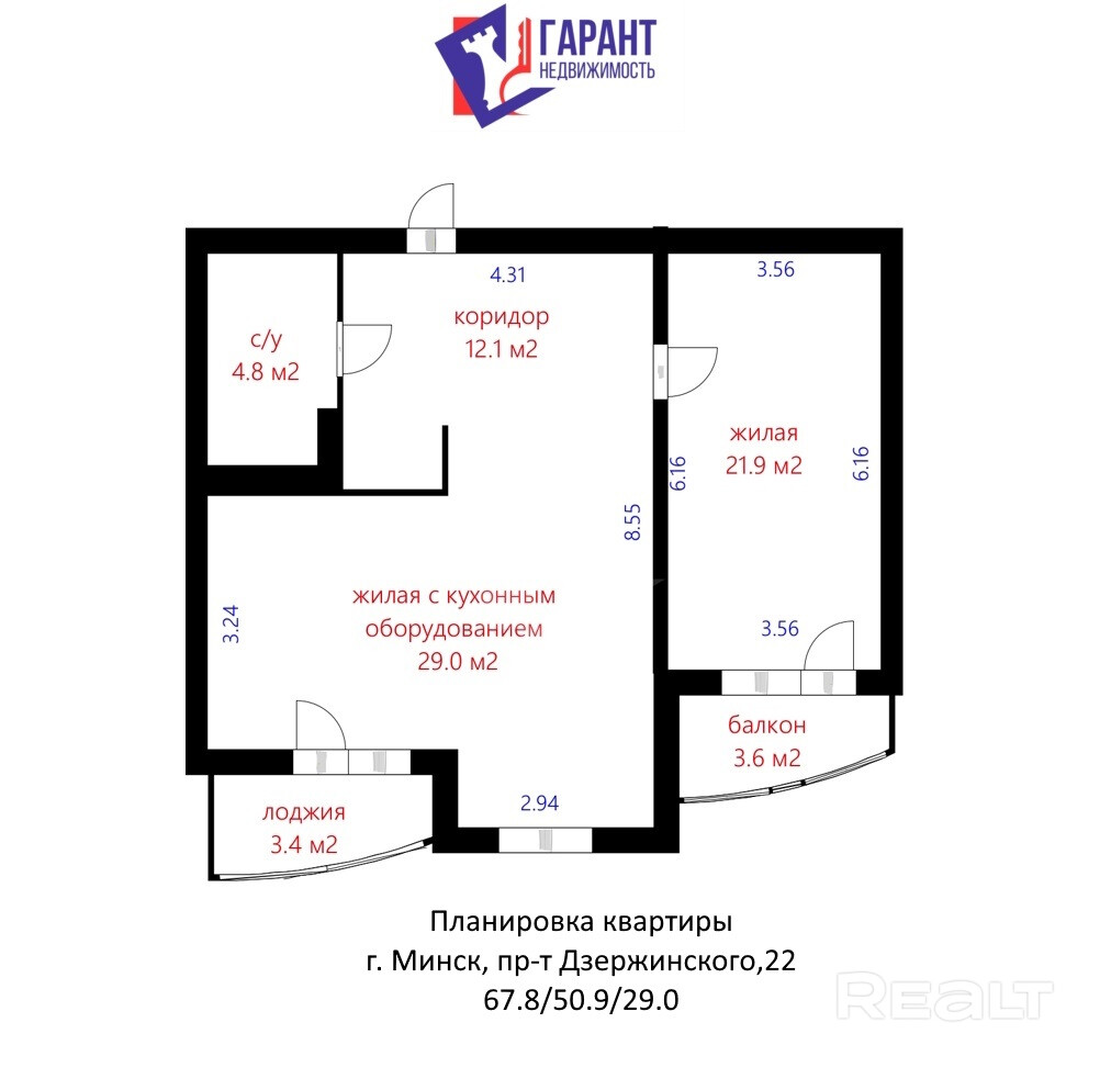 Общая площадь 67.8 кв.м.