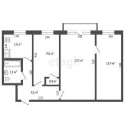 Площадь квартиры по СНБ 57,3м2. Общая площадь 56,5м2. Высотка потолка 2,53м.