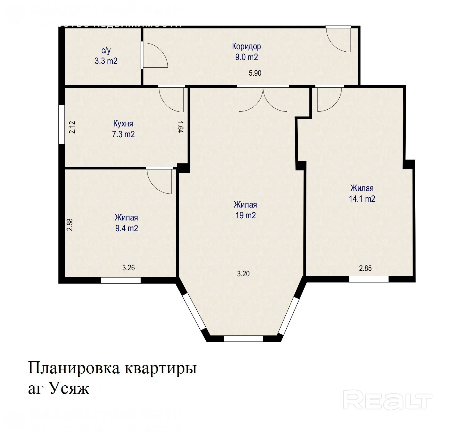Продается просторная 3-х комнатная квартира с отличной планировкой в пригороде Минска, в п.Усяж.