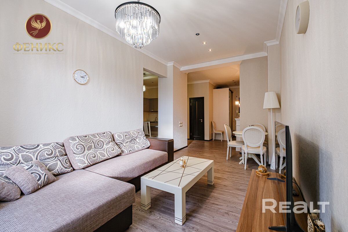 Прямо в доме находится вход в ст. м. «Октябрьская», а также 4 банкомата, отделение банка, аптека, салон связи, салон красоты, супермаркет, 6 ресторанов и кафе, в том числе McDonald’s и 2 французских кафе и ресторана La Crête D'Or. Дизайн квартиры Вам понравится. В ней сочетаются современный стиль и домашний уют. Во дворе есть бесплатная и безопасная автостоянка, а в 300 м. от дома находится охраняемая парковка. Вся мебель остается в квартире! Элементы декора - по договоренности! Отличный вариант как для проживания, так и для инвестиций.